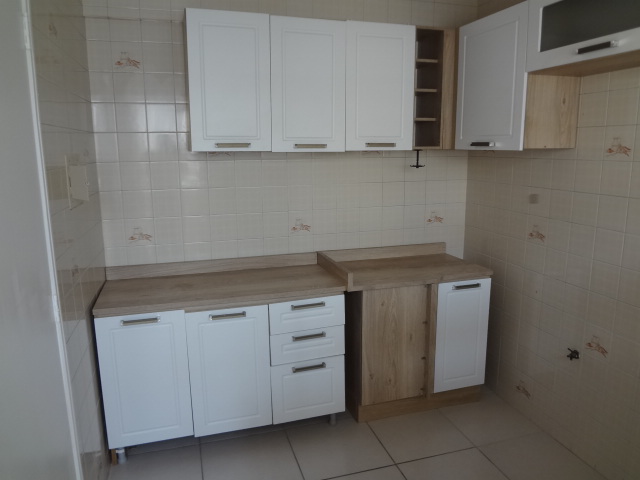 Ótimo apto de 2 quartos com uma vaga de garagem coberta para um carro pequeno com armários nos quartos e na cozinha e luminárias.